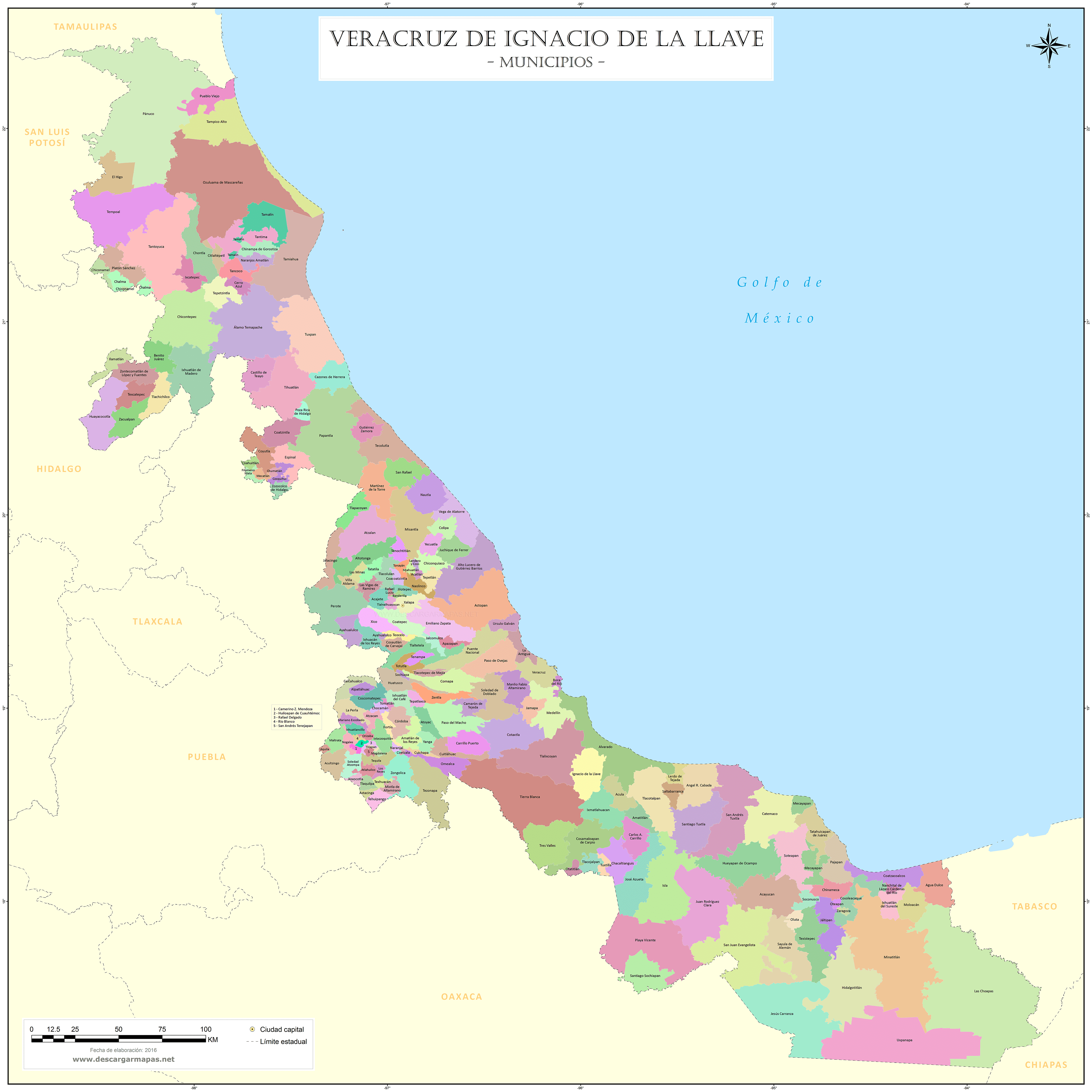 Mapa de municipios del estado de Veracruz de Ignacio de la Llave